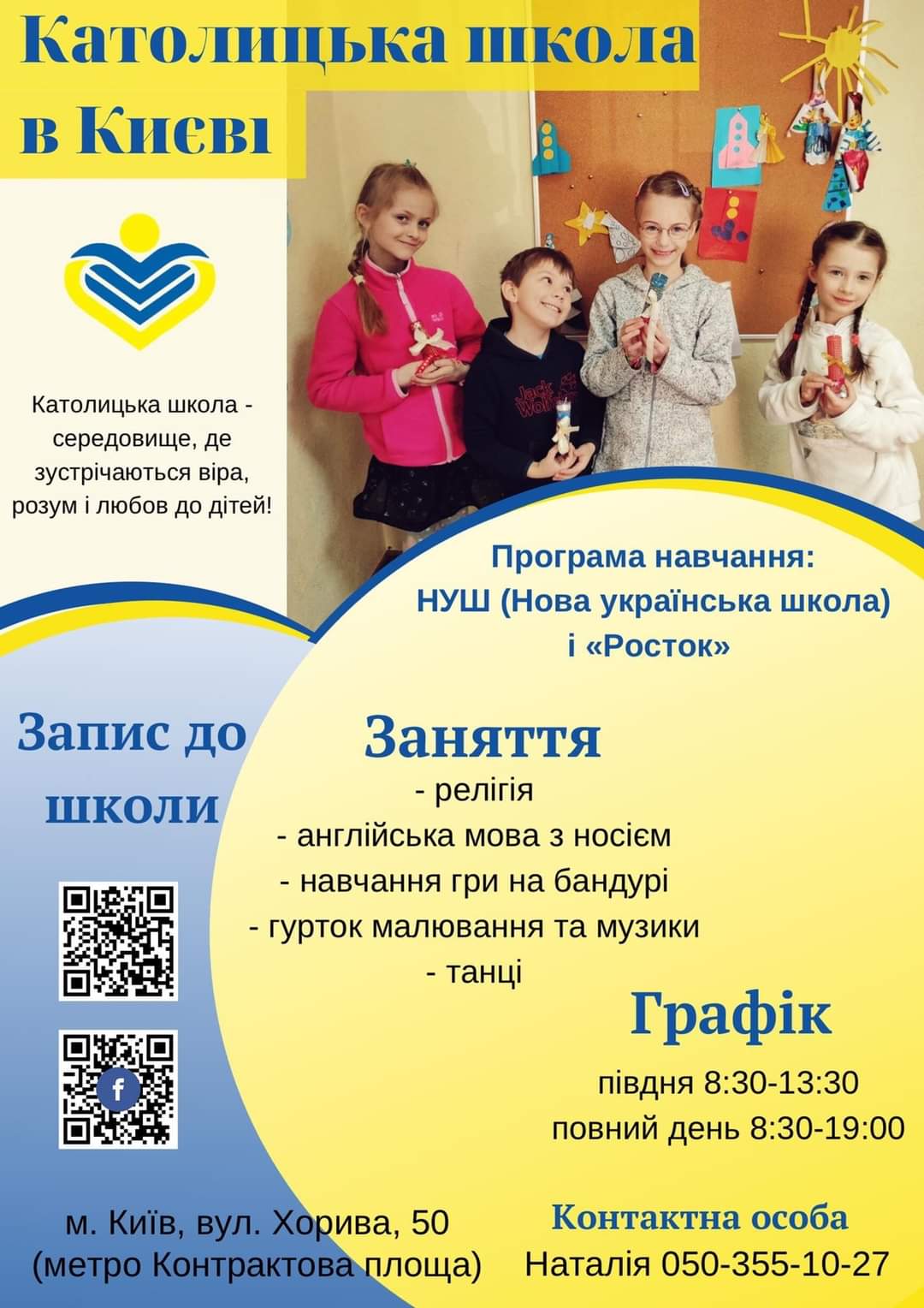 4.У Києві, на Подолі вже 2 рік як  започатковано діяльність  Католицької  школи, яку провадять наші Сестри Служебниці, а духовний провід здійснюють отці Василіяни. Зараз розпочався новий набір у  1-4 класи. На даний час успішно діють 1-2 клас. Хто шукає добру школу для своєї дитини, і є зацікавлений діяльністю Католицької школи, то можна ознайомитися зі школою та її дирекцією через сторінку у Фейсбук, або дзвонити за номером телефону, який вказаний на афіші, на дошці оголошень.